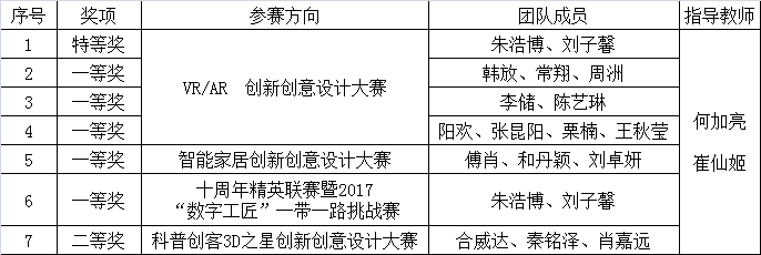 民大新闻网讯 日前,全国三维数字化创新设计大赛辽宁赛区比赛结果公布,由我校信息与通信工程学院选派的7支代表队在比赛中发挥出色,共获得省级特等奖1项,一等奖5项,二等奖1项,为学校赢得殊荣。