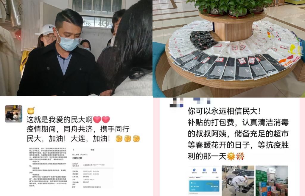关怀到位,暖心保障显“温度”。自校园封闭管理以来,学校全力保障校内健康监测,保障学生正常生活,从实际需要出发,为学生们准备“爱心礼包”,为在校学生累计发放15万个口罩,开通24小时资助咨询电话,多渠道开展防骗知识宣传。临近毕业,为全体在校毕业生发放“毕业饺子送民大骄子”饺子券,希望民大骄子始终能心怀民大,更向远方,在青春赛道上奋力奔跑。受助学生也积极响应学校号召,主动参与核酸检测志愿服务、校园责任区值班等疫情防控工作,用实际行动为民大战“疫”增添了一抹亮丽底色。