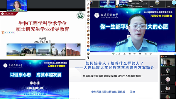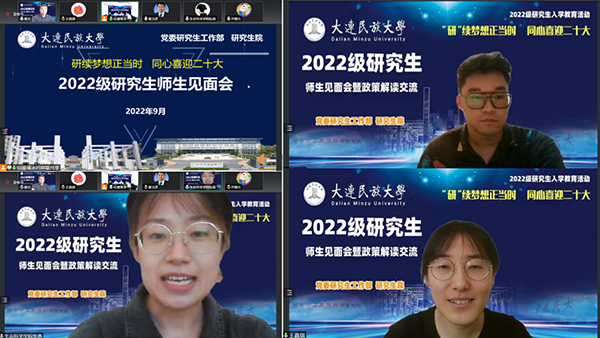 “居家学习”背景下,家校协同育人尤为重要。9月11日,学校各研究生培养单位分别召开了新生及家长线上见面会,详细介绍了本单位研究生教育教学、师资力量和人才培养情况,并就新生家长关心的问题进行了在线交流解答。9月13日,党委研究生工作部、研究生院召开全校2022级研究生新生见面会暨政策解读,部长、院长乌云娜结合校情校史回顾了学校研究生教育的历史发展脉络,介绍了学位授权点建设情况,并讲解了如何做一名合格的研究生。部门相关负责人做了不同类型研究生人才培养模式、思想政治教育和管理服务等方面的政策宣讲及相关工作的介绍,使家长对孩子未来的学习生活做到“心中有数”,同时理解学校的育人理念与方式方法,畅通家校互联互通渠道,配合学校共同做好学生教育工作,在学生成长发展中形成家校育人合力。