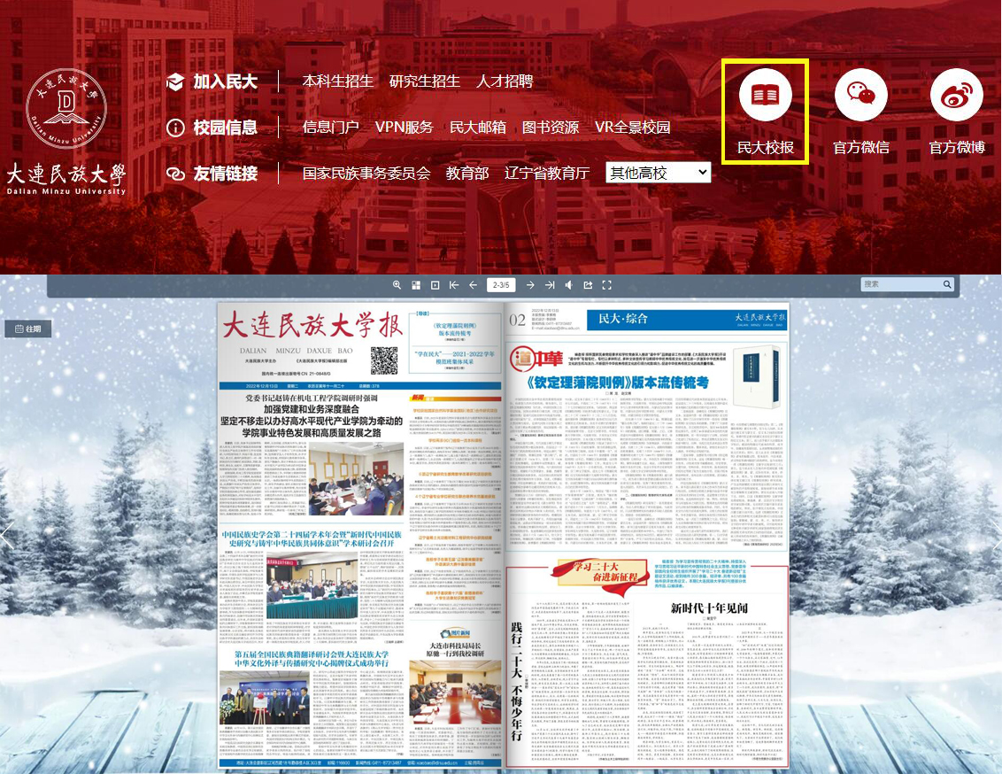 民大新闻网讯 为顺应互联网的发展大势,推进校园媒体融合,发挥党报舆论引领的重要作用,提高学校新闻宣传质量,经过近半年时间的筹备,12月30日,《大连民族大学报》(以下简称校报)数字版全新上线,正式与师生见面。