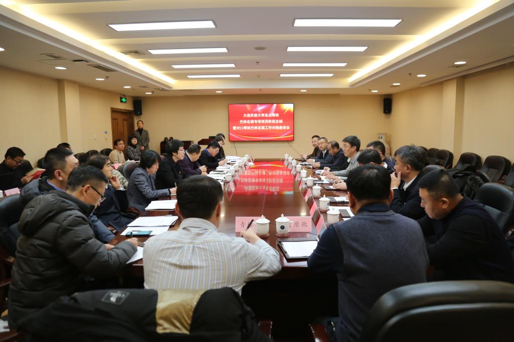 民大新闻网讯 日前,大连民族大学定点帮扶巴林右旗专项项目阶段总结暨对口帮扶巴林右旗工作对接座谈会在我校召开。巴林右旗人民政府副旗长敖木格图、巴林右旗相关单位领导、学校相关单位、部门负责同志和全体巴林右旗专项项目负责人参加会议。会议由副校长白日霞主持。