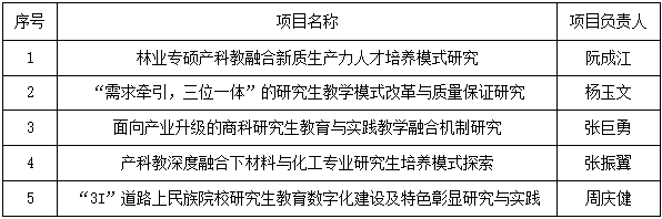 民大新闻网讯 日前,辽宁省教育厅下发《关于确定2024年度辽宁省研究生教育教学改革研究项目立项的通知》(辽教通〔2024〕270号),我校《林业专硕产科教融合新质生产力人才培养模式研究》等5个项目获批立项。2022年以来,我校已有13个项目获批辽宁省研究生教育教学改革研究项目。