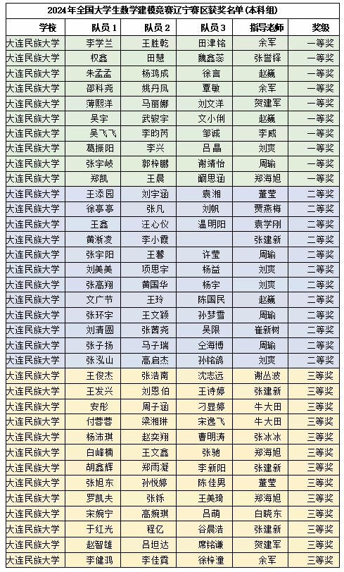 民大新闻网讯 近日,2024年全国大学生数学建模竞赛辽宁赛区获奖名单揭晓,我校学子荣获省级一等奖10项、省级二等奖12项、省级三等奖13项,在获奖数量和等级上均取得新突破。