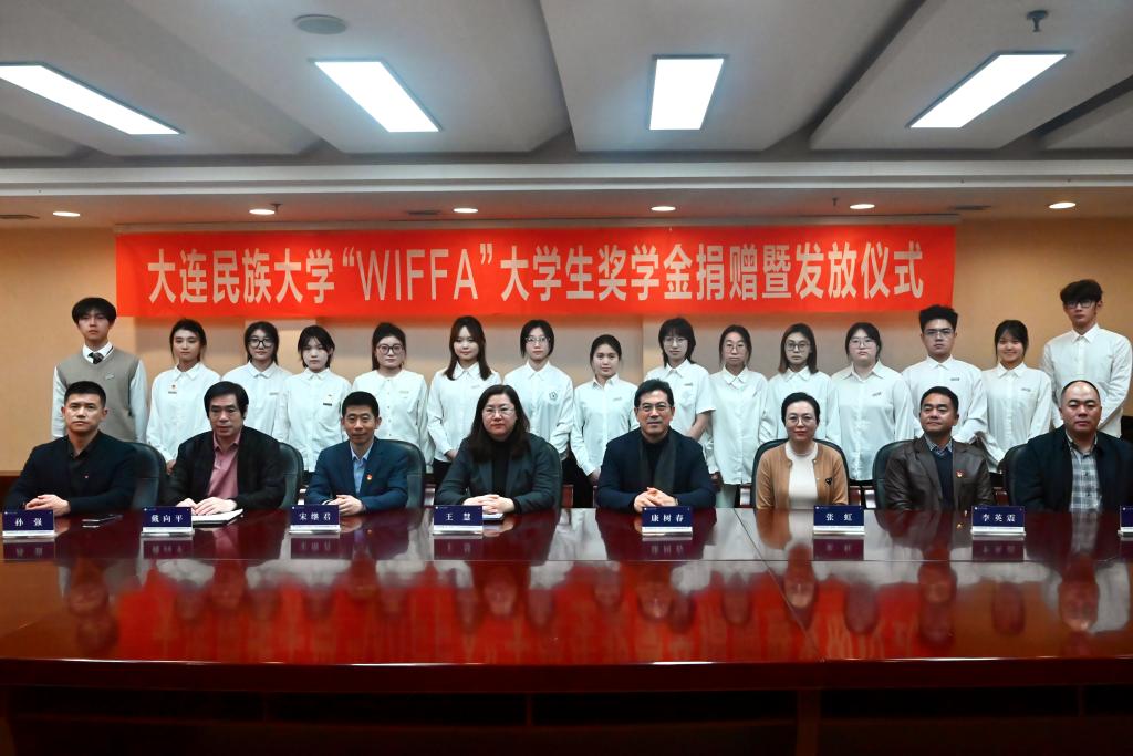 民大新闻网讯 12月26日,“WIFFA”大学生奖学金捐赠暨发放仪式在我校举行。WIFFA国际货代信用合作平台理事长康树春,大连市青少年发展服务中心副主任、青少年发展基金会理事长宋继君,学校党委常委、副校长王慧参加会议。