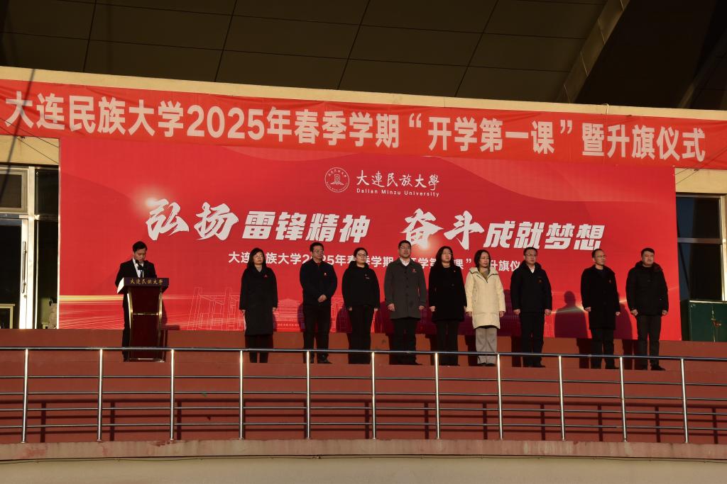 民大新闻网讯 为深入贯彻落实学校党委二届三次全会精神和全面落实学校第二次党代会精神推进会暨2025年学校工作布置会精神,激励全校师生以饱满的精神面貌和昂扬的奋进姿态开启2025年春季新学期,3月3日,学校在两校区举行“弘扬雷锋精神,奋斗成就梦想”2025年春季学期“开学第一课”暨升旗仪式。副校长董斌、王慧参加活动。