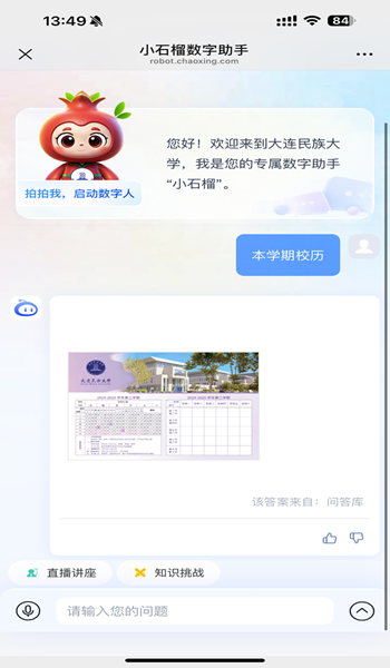 民大新闻网讯 为进一步提升学校教育教学数字化、教学服务智能化水平,提高办事效率,满足广大师生进一步了解教务政策、使用平台教学资源的需求,经过前期精心研发与反复测试,教务处联合超星公司共同打造的AI智能体“小石榴”即日起正式上线。