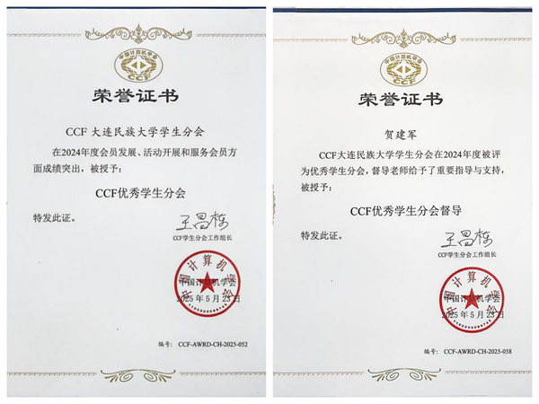 我校CCF学生分会于2023年12月,在党委研究生工作部、研究生院和信息与通信工程学院的共同指导下成立,是CCF在大连地区成立的第2个学生分会,也是CCF在国家民委直属高校成立的首个学生分会。成立以来,CCF大连民族大学学生分会以“服务同学,促进交流”为宗旨,致力于搭建学术交流与成长平台,全力支持学生的成长和发展,同时扩大学校社会影响力。