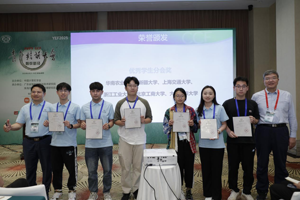 民大新闻网讯 近日,中国计算机学会(CCF)在珠海横琴举办2025年青年精英大会(YEF2025),公布了学生分会工作情况评估结果。我校CCF学生分会在2024年度活动开展、服务学生等方面成绩突出,被授予“CCF优秀学生分会”称号,信息与通信工程学院副院长贺建军被授予“优秀学生分会督导”称号。
