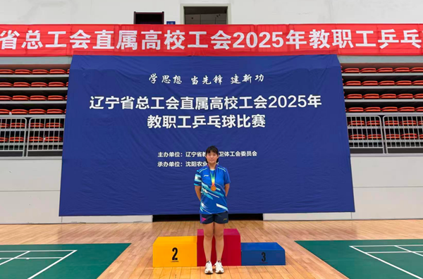 民大新闻网讯 8月30日,由辽宁省教科文卫体工会主办、沈阳农业大学承办的辽宁省总工会直属高校工会2025年教职工乒乓球比赛,在沈阳圆满落幕。经过两天紧张激烈的角逐,体育教学研究部姜领老师斩获女子单打项目冠军,我校荣获优秀组织奖。