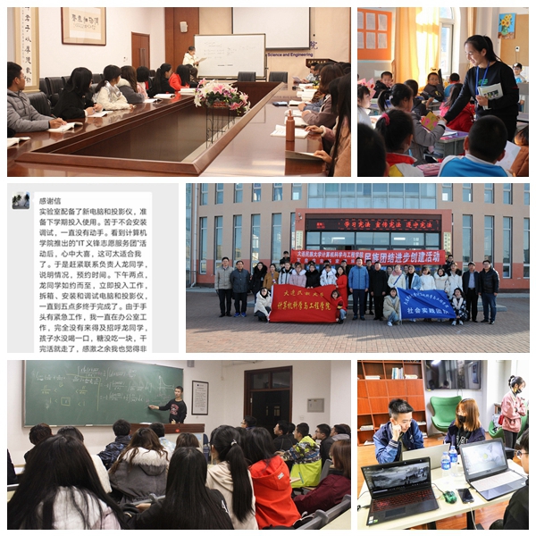 “IT义锋”是计算机科学与工程学院的品牌活动,自2013年启动以来,一直延续至今。2020年,“IT义锋”志愿服务项目获“大连市青年志愿者行动优秀项目”“辽宁省共青团志愿服务基地”等荣誉。