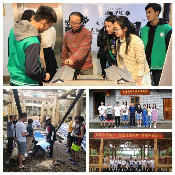 建筑学院在贵州省铜仁市、辽宁省新宾满族自治县、江西省抚州市乐安县金竹畲族乡以及大连市都设有实践基地。每年,学院都会组织学生到民族地区实地研究考察地方民居和民族建筑,让学生实地测量民居建筑,与当地老百姓共吃住,感受民俗、民风,更好地了解民族建筑特色。