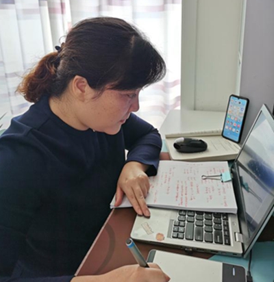 好的开始是成功的一半,为了让线上教学开个好头,在2月初的学校线上教学平台培训上,韩桂英不断学习并熟悉和掌握了在线教学平台使用方法,闯过技术关。
