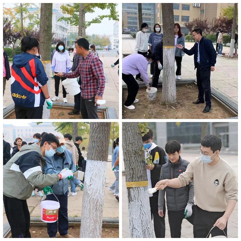 “大家在涂白之前需要进行试刷,也就是确定涂白剂的粘稠度是否合适。接着进行涂白操作,用毛刷蘸取涂白液,均匀地涂抹在树干一米二以下的位置,反复涂抹,不能留下空隙。涂白操作结束后,要及时清洁使用过的工具、容器以及场地。”活动现场,从冬季树木涂白的美观性、抗虫害、防冻伤等实际作用,到涂白剂的原料组成,再到具体操作和方法窍门,生活服务中心有限责任公司直属党支部书记、董事长赵霄鹏为同学们进行了耐心的讲解,大家听完都跃跃欲试,眼中闪烁着兴奋。