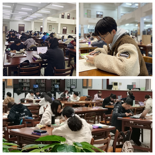 晨光透过薄雾,鸟鸣伴着书声,早晨六点,图书馆迎来了第一批自习的民大学子。笔尖划过纸张发出的“沙沙”声,手指触碰键盘的微弱敲击声,走廊上同学来回踱步的轻轻背诵声,为清晨奏响了最美的乐曲。