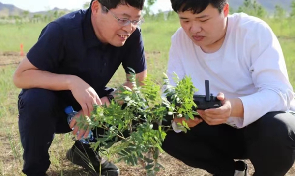 在内蒙古赤峰市巴林右旗宝日勿苏镇万亩文冠果科技创新示范园,我校环境与资源学院院长阮成江正在现场指导学生安装调试文冠果表型智能感知与分析系统。调试成功后,阮成江和团队就可以在线上接收数据并对文冠果生长发育及开花结实情况进行实时监测,为宝日勿苏镇万亩文冠果科技创新示范园工程建设、文冠果林管抚等项目提供远程指导。