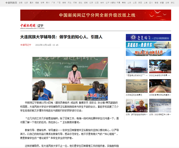 寒风瑟瑟的校园里,大连民族大学设计学院辅导员王弘毅刚刚结束与学生干部的会议,拿起手机回复了几个学生短信的她又步履匆匆地赶去与提前约好的同学进行谈话。