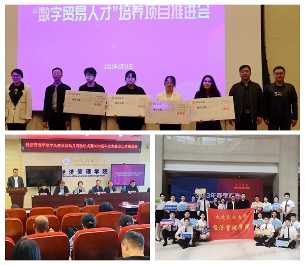 前几天,电商学院召开了“数字贸易人才”培养项目推进会,落实《大连民族大学电商产业学院建设方案(试行)》,促进经管类专业学生产业发展能力、实践能力、创新创业能力的培养与提高,为数字产业培养更高素质的人才。推进会当天,阿里巴巴国际站区域和沈阳经通公司负责人也来到了现场,推进合作办学管理。