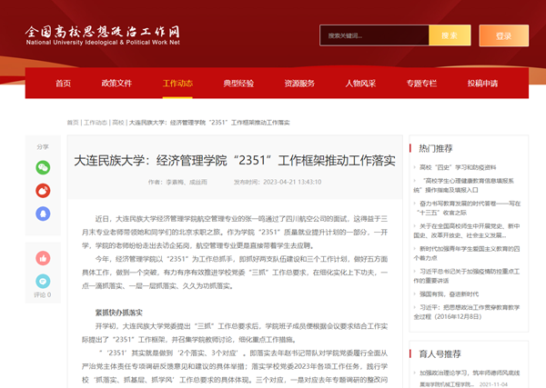 开学初,大连民族大学党委提出“三抓”工作总要求后,学院班子成员便根据会议要求结合工作实际提出了“2351”工作框架,并召集学院教师讨论,细化重点工作措施。