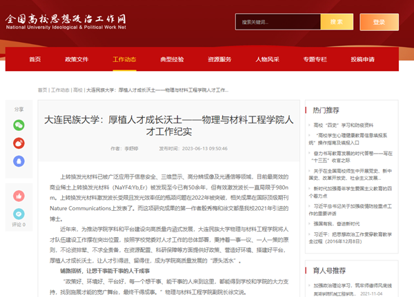 近年来,为推动学院学科和平台建设向高质量内涵式发展,大连民族大学物理与材料工程学院将人才队伍建设工作摆在突出位置,按照学校党委对人才工作的总体部署,秉持着一事一议、一人一策的原则,不论资排辈、不求全责备,在资源配置、科研保障等方面提供好政策、营造好环境、搭建好平台,厚植人才成长沃土,让人才引得进、留得住,成为学院高质量发展的“源头活水”。