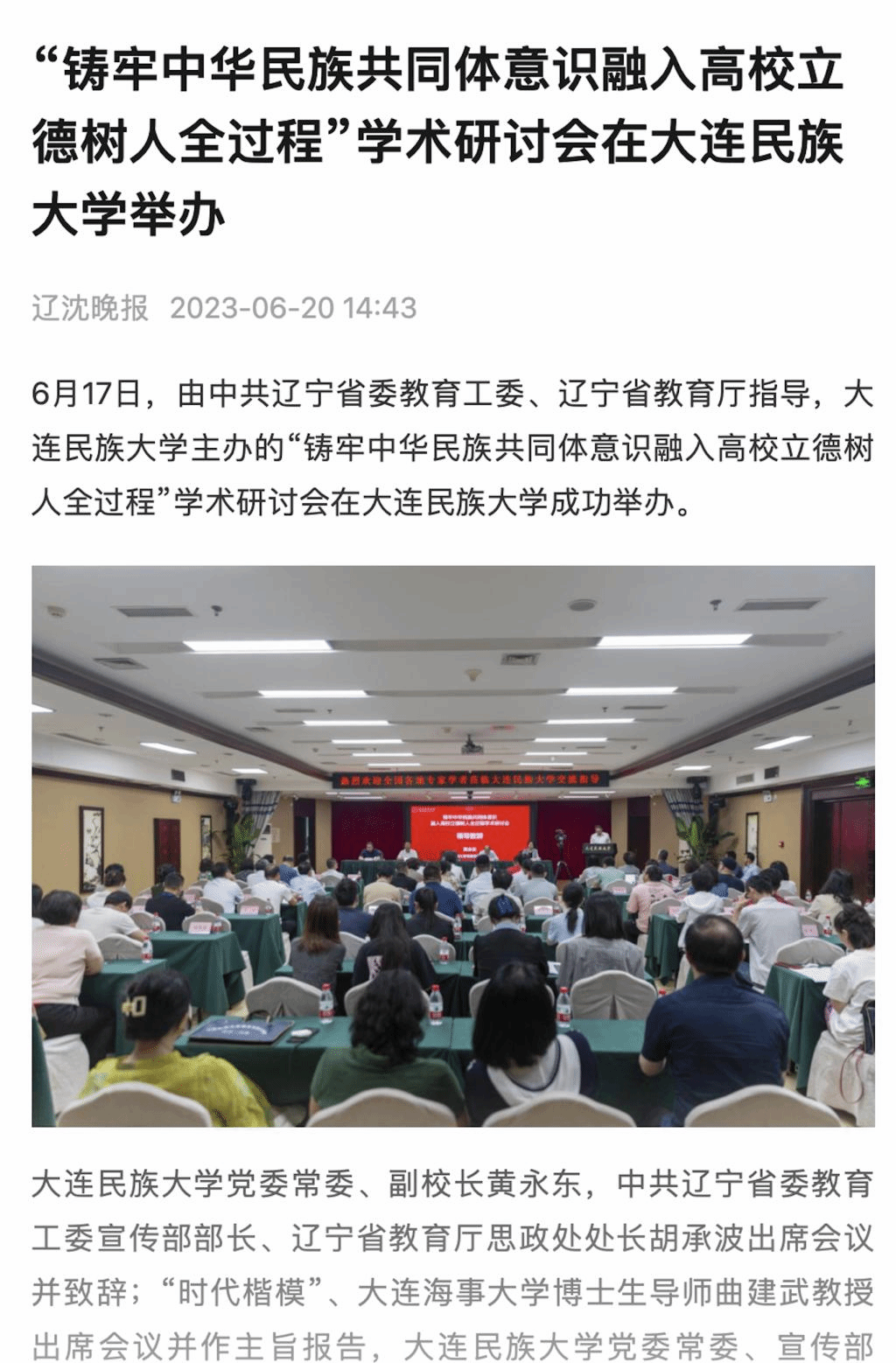 6月17日,由中共辽宁省委教育工委、辽宁省教育厅指导,大连民族大学主办的“铸牢中华民族共同体意识融入高校立德树人全过程”学术研讨会在大连民族大学成功举办。