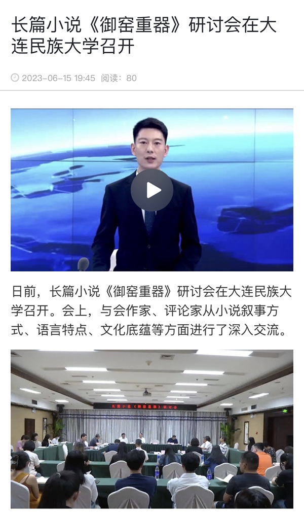 日前,长篇小说《御窑重器》研讨会在大连民族大学召开。会上,与会作家、评论家从小说叙事方式、语言特点、文化底蕴等方面进行了深入交流。