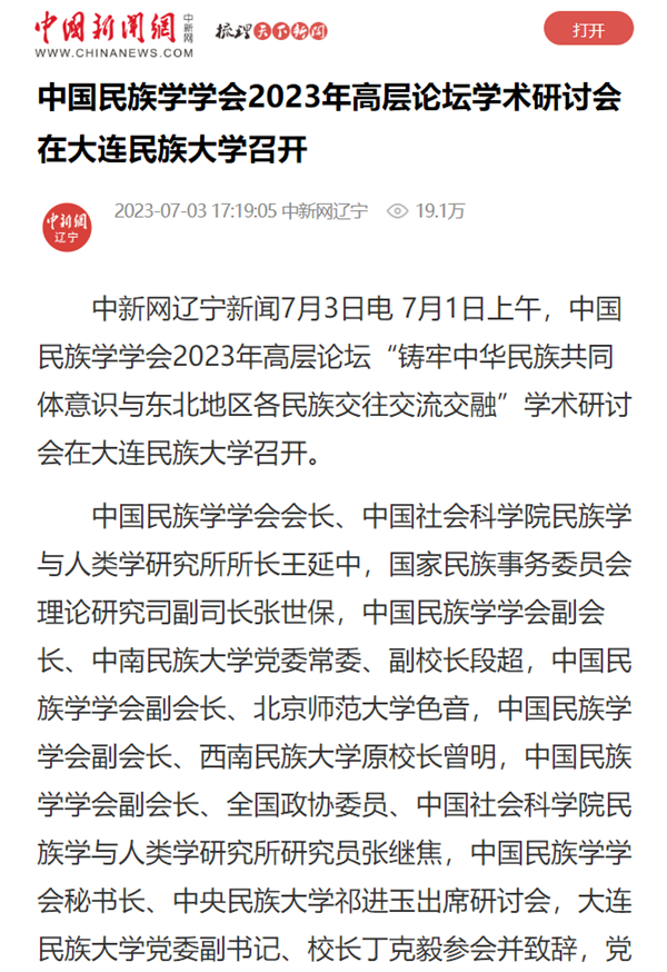 中新网辽宁新闻7月3日电 7月1日上午,中国民族学学会2023年高层论坛“铸牢中华民族共同体意识与东北地区各民族交往交流交融”学术研讨会在大连民族大学召开。