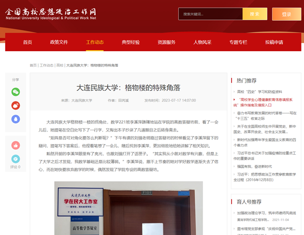 大连民族大学格物楼一楼的拐角处,数学221班李溪萍踌躇地站在学院的高数答疑坊前,看了一会儿后,她提笔在空白处写下了一行字,又掏出本子抄录了几道题目之后转身离去。
