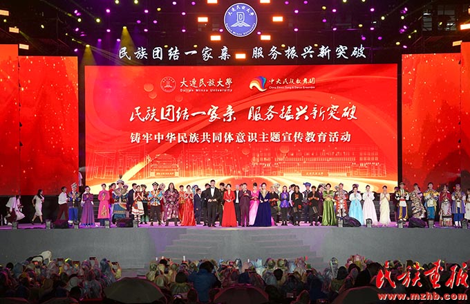 此次主题宣传教育活动以铸牢中华民族共同体意识为主线,通过歌曲、舞蹈、朗诵等多种艺术形式,融合多民族艺术元素,紧扣时代脉搏与文化内涵,表达了民族团结一家亲,服务振兴新突破的情怀与担当,奏响铸牢中华民族共同体意识时代强音,用高雅文化助力辽宁全面振兴新突破三年行动,助力新时代大连“两先区”“三个中心”高质量发展,为学校推进高水平现代化综合大学建设凝聚奋进力量,吹响前进号角。著名歌唱家腾格尔、曲比阿乌,青年歌手扎西顿珠和彝人制造组合等众多知名演员领衔出演,现场万余名观众在两个小时的中华民族艺术文化的视觉盛宴中沉浸陶醉。