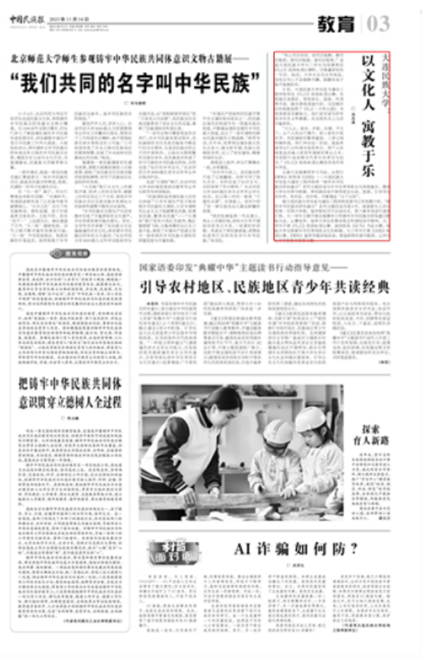 从练习太极拳到学习书法,从探讨《春秋》到传诵《诗经》……大连民族大学信息与通信工程学院将“铸牢中华民族共同体意识”系列主题活动与中华优秀传统文化深度融合,激发大学生的参与热情,将实践活动开展得更加生动、直接,引导学生有所学、有所思、有所得,不断增进“五个认同”。
