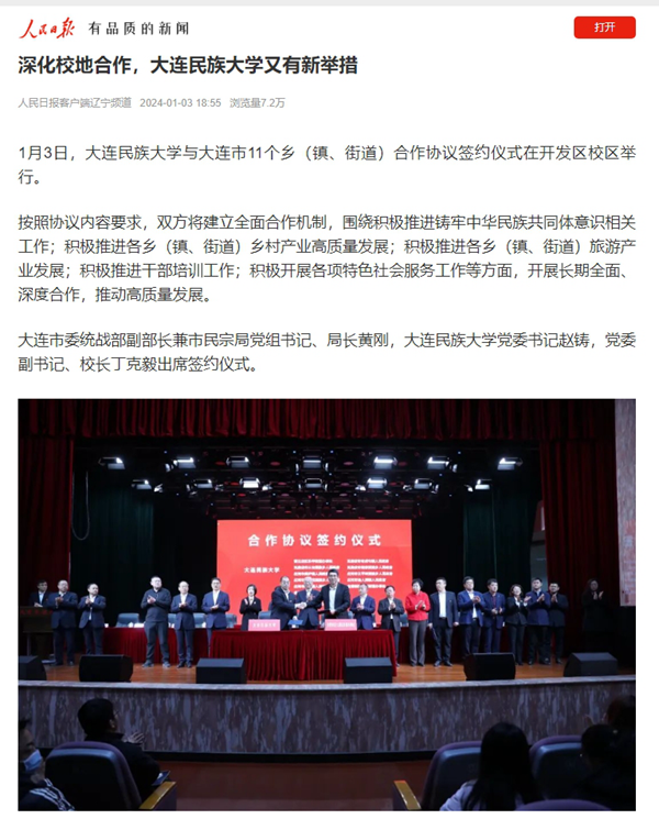 1月3日,大连民族大学与大连市11个乡(镇、街道)合作协议签约仪式在开发区校区举行。