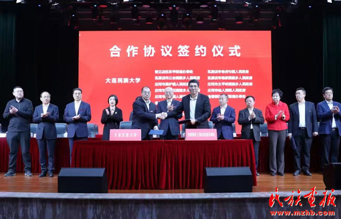 黄刚表示,大连民族大学与大连市11个乡(镇、街道)签署合作协议,助力乡村振兴发展,这既是服务新时代大连民族工作的有力举措,也是贯彻落实习近平总书记在中央政治局第九次集体学习时的重要讲话精神的实际行动,对于铸牢中华民族共同体意识大连实践,推动新时代大连民族工作高质量发展具有重要意义。希望双方搭建更加宽广的合作平台,创新更加丰富的合作形式,形成更加紧密的合作关系,努力建成校地合作的典范。聚焦优势产业,加强产学研转化,携手全面推动民族地区经济社会事业发展。