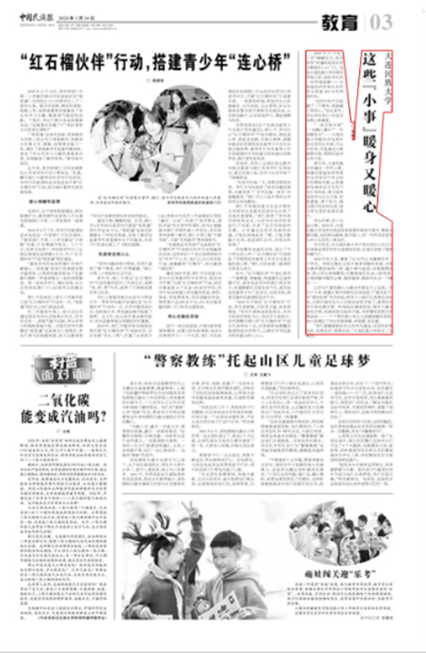 多年来,大连民族大学通过一件件小事,构建对家庭经济困难学生衣食住行学立体式的精准关爱,以及德智体美劳全方位的行为引导体系,着力培养受助学生自立自强、知恩感恩、勇于担当、励志成才的良好品质,助力学生更好地成长成才。