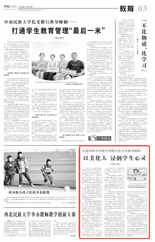 “我们将充分发挥美育培根铸魂、启智润心的作用,引领青年学生树立正确的审美观念,陶冶高尚情操,塑造美好心灵,把所学应用到美好生活、美丽中国建设和中华民族伟大复兴中。”周思昊说。