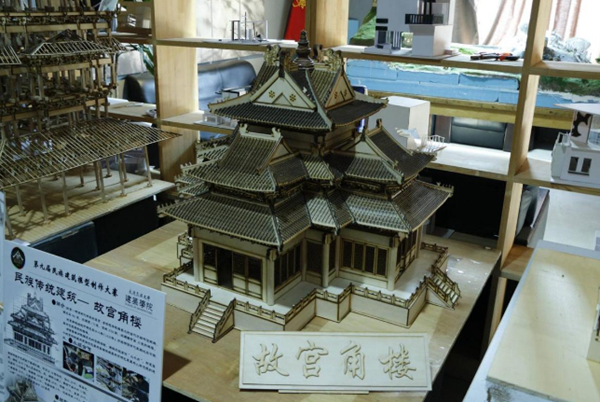 故宫角楼、黄鹤楼、徽派村落……大连民族大学建筑学院的建筑馆正在展出学生们搭建的建筑模型,既有典型的单体建筑、也有带环境的的群体建筑。学生们经过收集资料、图纸绘制、手工制作、拼接组合等过程,高度还原出30多组不同地域反映中国传统建筑文化的经典建筑模型。
