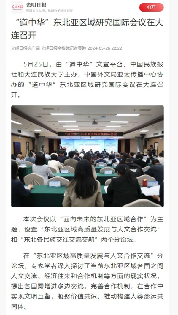5月25日,由“道中华”文宣平台、中国民族报社和大连民族大学主办,中国外文局亚太传播中心协办的“道中华”东北亚区域研究国际会议在大连召开。