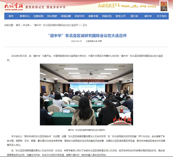 2024年5月25日,由“道中华”文宣平台、中国民族报社和大连民族大学主办,中国外文局亚太传播中心协办的“道中华”东北亚区域研究国际会议在大连召开。