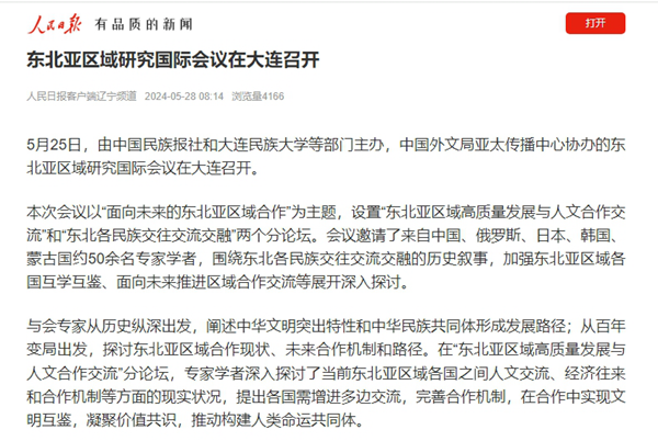 5月25日,由中国民族报社和大连民族大学等部门主办,中国外文局亚太传播中心协办的东北亚区域研究国际会议在大连召开。