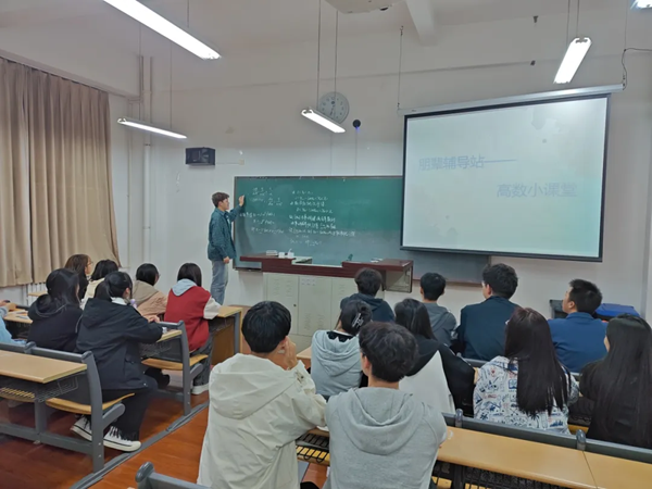 “老师,这道题应该怎么讲,大家才能听得懂?”夜已深,电子信息类研究生王文博正向班导师孙青芬请教。受经济管理学院的邀请,孙青芬带领学生开展“高数提升”助学辅导活动,王文博也上台当起了老师。遇到不懂的问题,他及时向孙青芬请教。