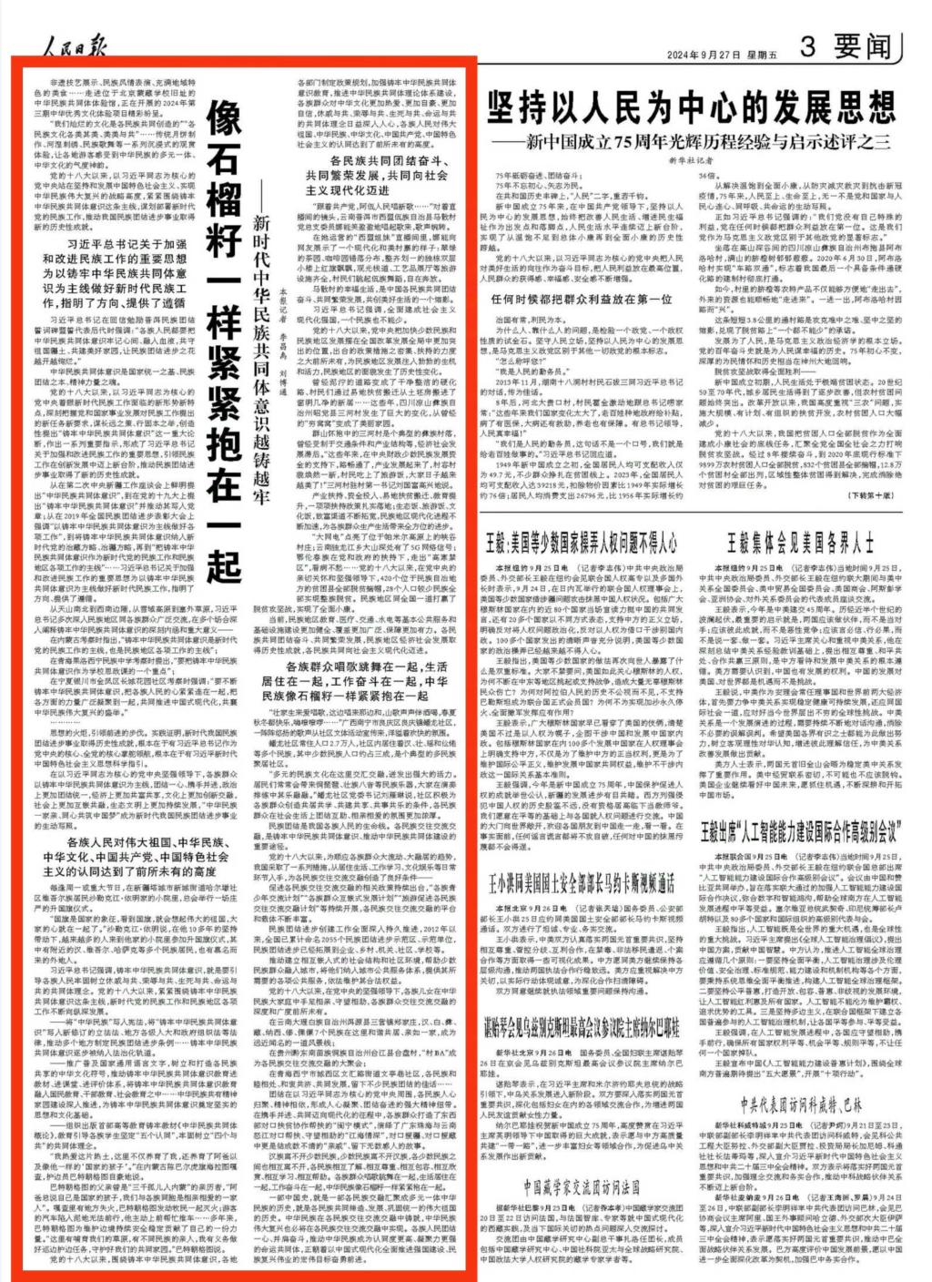 各族群众唱歌跳舞在一起,生活居住在一起,工作奋斗在一起,中华民族像石榴籽一样紧紧抱在一起