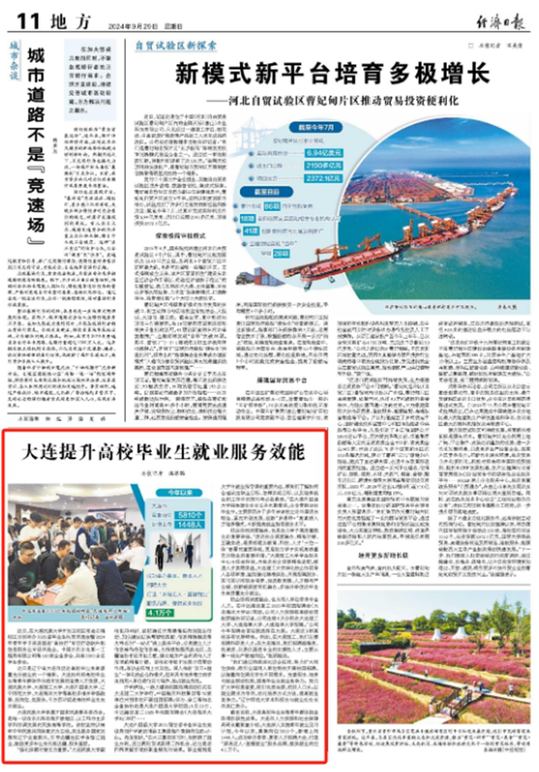 这只是辽宁省大连市促进高校毕业生高质量充分就业的一个缩影。大连始终将高校毕业生等青年群体作为城市发展的宝贵人才资源,大连民族大学、大连理工大学、大连外国语大学、辽宁师范大学、大连海洋大学等高校多措并举强政策、拓岗位、优服务,千方百计促进高校毕业生充分就业。