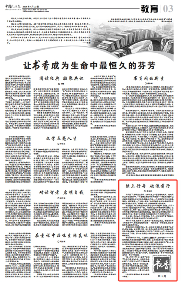 “陆上行舟”四个字,道尽了新闻工作者的艰辛与执着。刘骁骞和他的同行们,用理想与勇气为黑暗的角落带去微光。而作为一名校园记者,这本书给予我的不仅是知识,更是一种信念:即使前路艰难,也要做那个在陆地上行舟的人,以笔为桨,破浪前行。