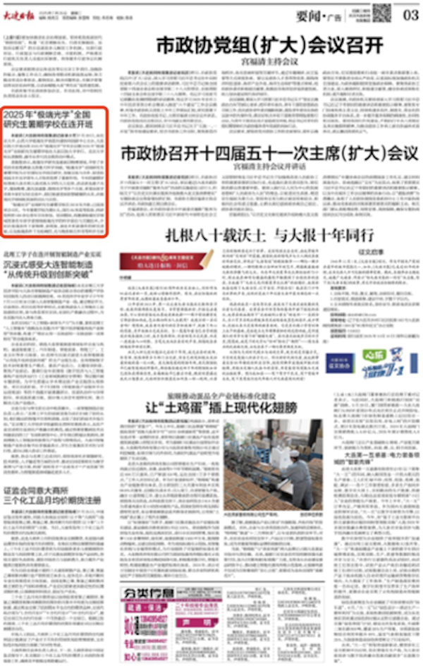 本报讯(大连新闻传媒集团记者谢小芳) 7月28日,由北京大学、山西大学极端光学省部共建协同创新中心主办,大连民族大学承办的2025年“极端光学”学术会议暨2025年“极端光学”全国研究生暑期学校在大连民族大学举行。北京大学校长龚旗煌出席活动开幕式。