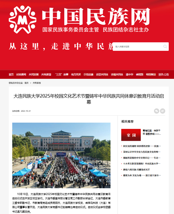10月18日,大连民族大学2025年校园文化艺术节暨铸牢中华民族共同体意识教育月启动仪式在开发区校区举行。大连市委宣传部分管日常工作副部长柳金红,大连市委教育工委专职副书记、市教育局党组成员杨丽杰,大连民族大学校友、微神马科技(大连)有限公司董事长曹天佑,大连民族大学党委书记赵铸等出席启动仪式。启动仪式由学校团委书记孟凡鹏主持。