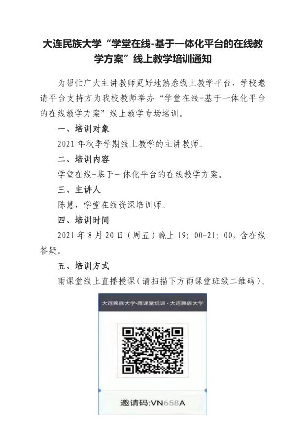 大连民族大学“学堂在线-基于一体化平台的在线教学方案”线上教学培训通知