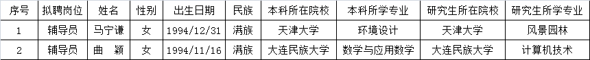 附件:大连民族大学2020年公开招聘辅导员拟聘用人员公示名单(第二批)