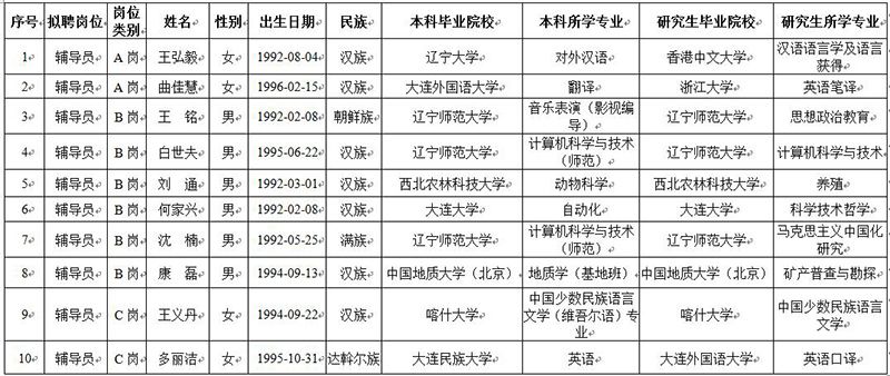 附件:大连民族大学2020年公开招聘辅导员拟聘用人员公示名单(第一批)