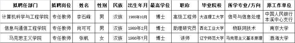 根据《国家民委直属事业单位公开招聘人员暂行办法》《大连民族大学优秀人才引进与管理实施办法(试行)》及《大连民族大学2019年公开招聘教师公告》,经个人申报、资格审查、试讲考核、体检考察等程序,经学校党委研究,确定了大连民族大学2019年公开招聘拟聘人选李石峰等3人,现予以公示。
