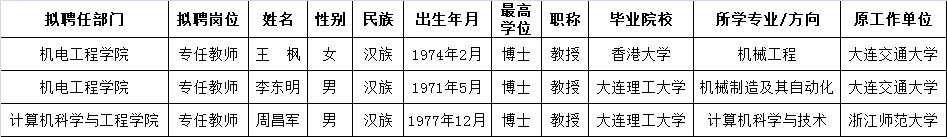 根据《大连民族大学优秀人才引进与管理实施办法(试行)》及《大连民族大学2019年公开招聘高层次人才公告》,经个人申报、资格审查、试讲考核、体检考察等程序,经学校党委研究,确定了大连民族大学2019年公开招聘高层次人才王枫等3人,现予以公示。