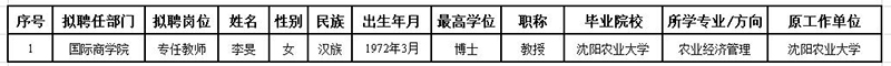 根据《大连民族大学优秀人才引进与管理实施办法(试行)》及《大连民族大学2019年公开招聘高层次人才公告》,经个人申报、资格审查、试讲考核、体检考察、查阅干部档案等程序,经学校党委研究,确定了大连民族大学2019年公开招聘高层次人才李旻1人,现予以公示。
