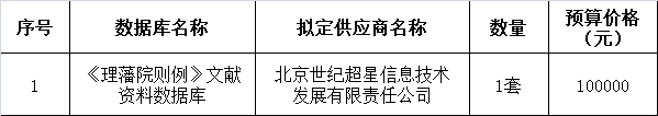 根据《中华人民共和国政府采购法》及《大连民族大学采购管理办法(修订)》,经校外专家论证,对图书馆2019年《理藩院则例》文献资料数据库进行单一来源采购,现公示如下。